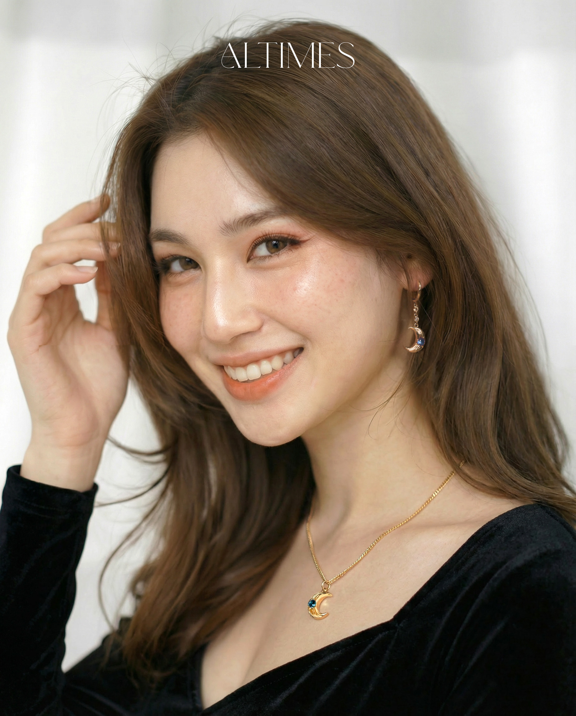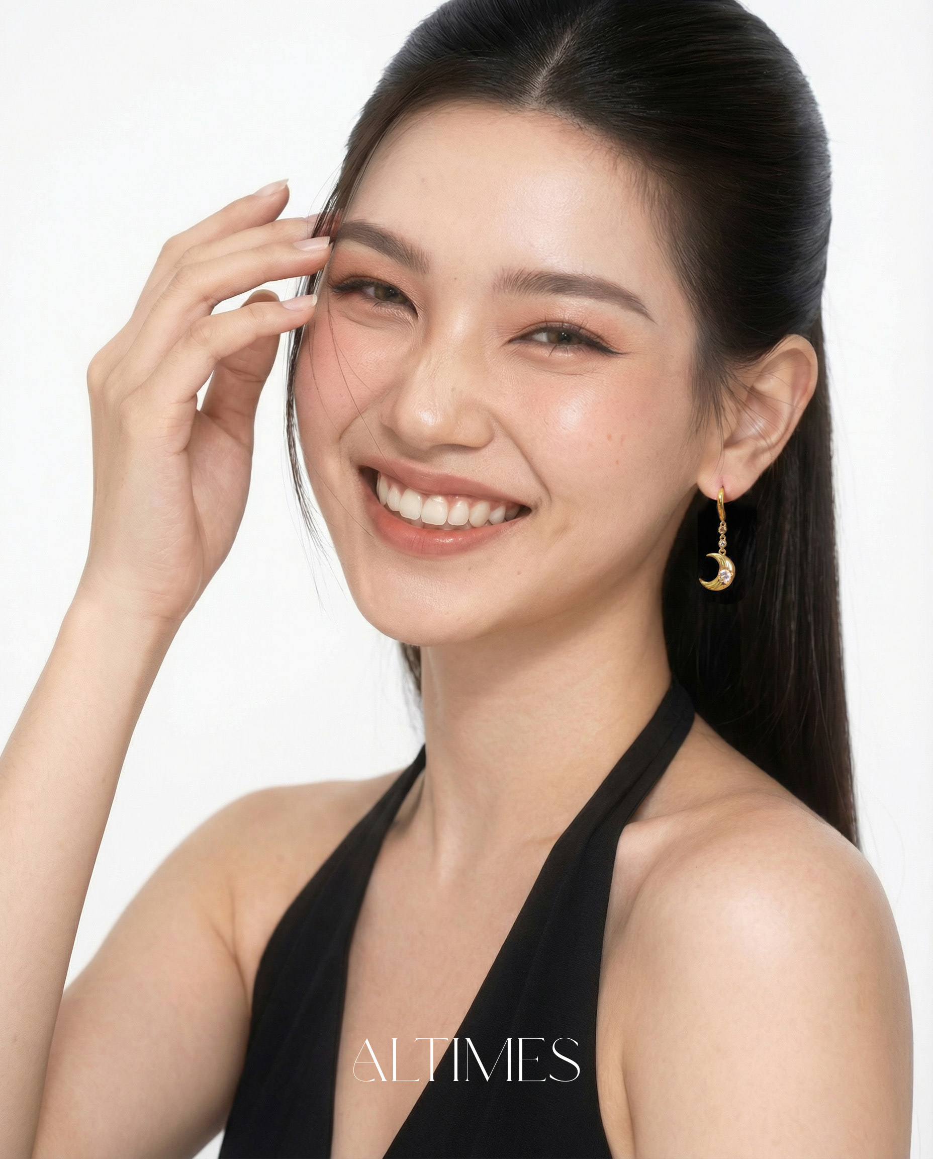 งานดีไซน์ทรงพระจันทร์เสี้ยวเป็นการออกแบบที่เพิ่มลูกเล่นโดยการใช้ Texture แบบคลื่นที่เหมือนแสงของพระจันทร์ตกกระทบบนพื้นผิวน้ำ และใช้พลอยแท้ฝังตรงกลางเพิ่มความเปล่งประกายโดดเด่น